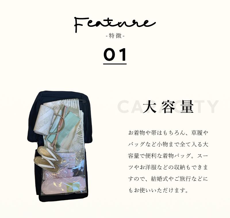 お着物やかさばる和装小物、スーツ類一式など全てを1つに収納できるバックになります。
