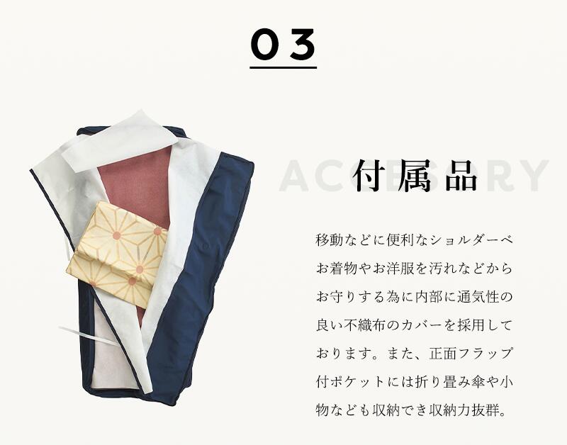 またお着物やお洋服を汚れなどからお守りする為に内部に通気性の良い不織布のカバーを採用しております。