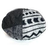 パッチワーク ポン付きニットベレー帽(015/BK)