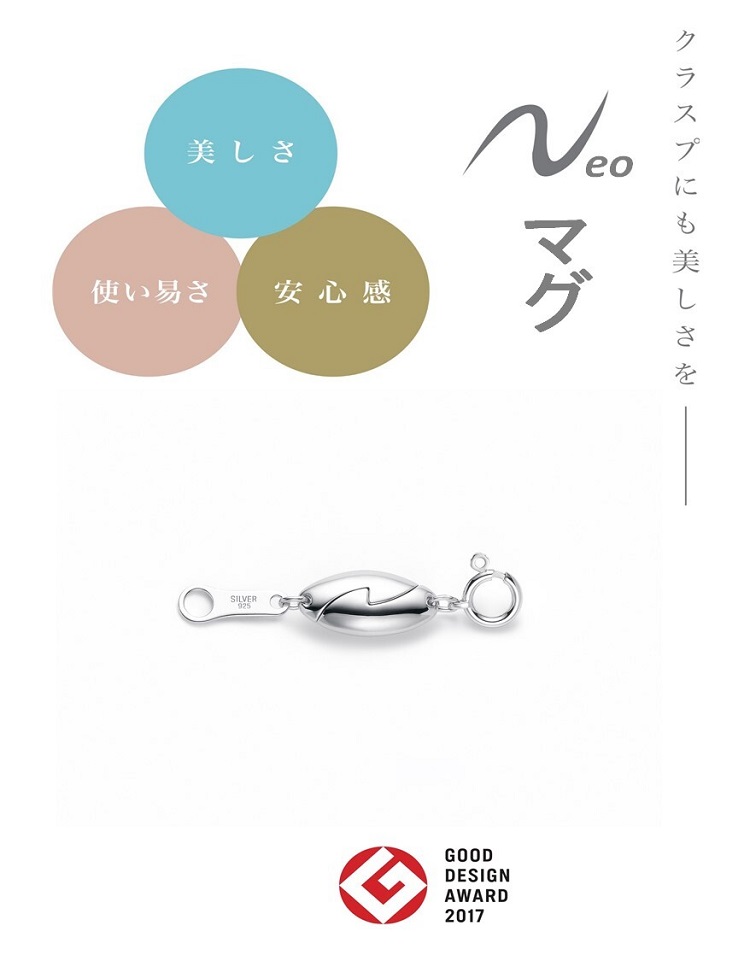 引き輪とプレートが付いた「Neoマグ」はお手持ちのネックレスに装着し自ら取り外すことも可能です。扱いやすさサイズ感を両取り。