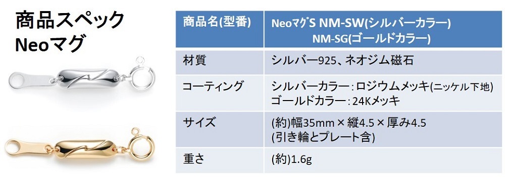 引き輪とプレートが付いた「Neoマグ」はお手持ちのネックレスに装着し自ら取り外すことも可能です。細いチェーンにちょうどいいサイズ。