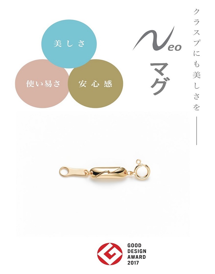 引き輪とプレートが付いた「Neoマグ」はお手持ちのネックレスに装着し自ら取り外すことも可能です。細いチェーンにちょうどいいサイズ。
